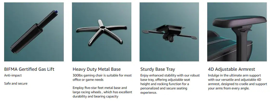 Soutien lombaire dynamique et siège épais, chaise de jeu réglable en hauteur avec siège pivotant à 360 ° et pour le bureau ou les jeux